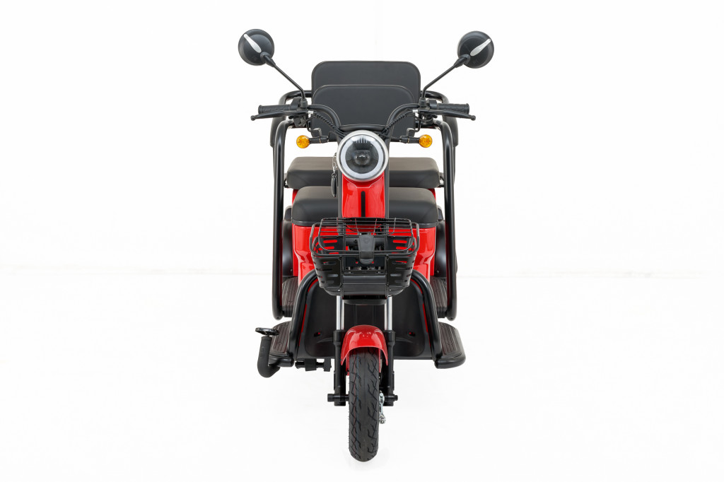 A tricikli három 8"-os keréken áll. A közutakon való biztonságos közlekedés érdekében teljes világítással rendelkezik, beleértve az irányjelzőket is.